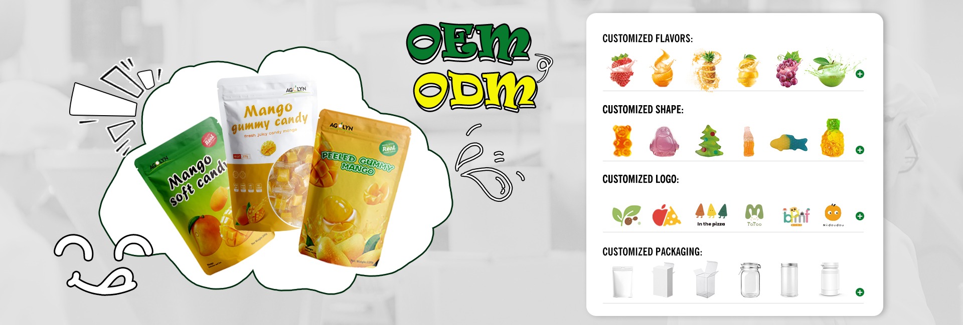 Hot Selling Popular Mango Flavored Fruit Gummy Candy Sweet and Fruity Soft Jelly Bulk Box and Bag Packaging for Wholesale